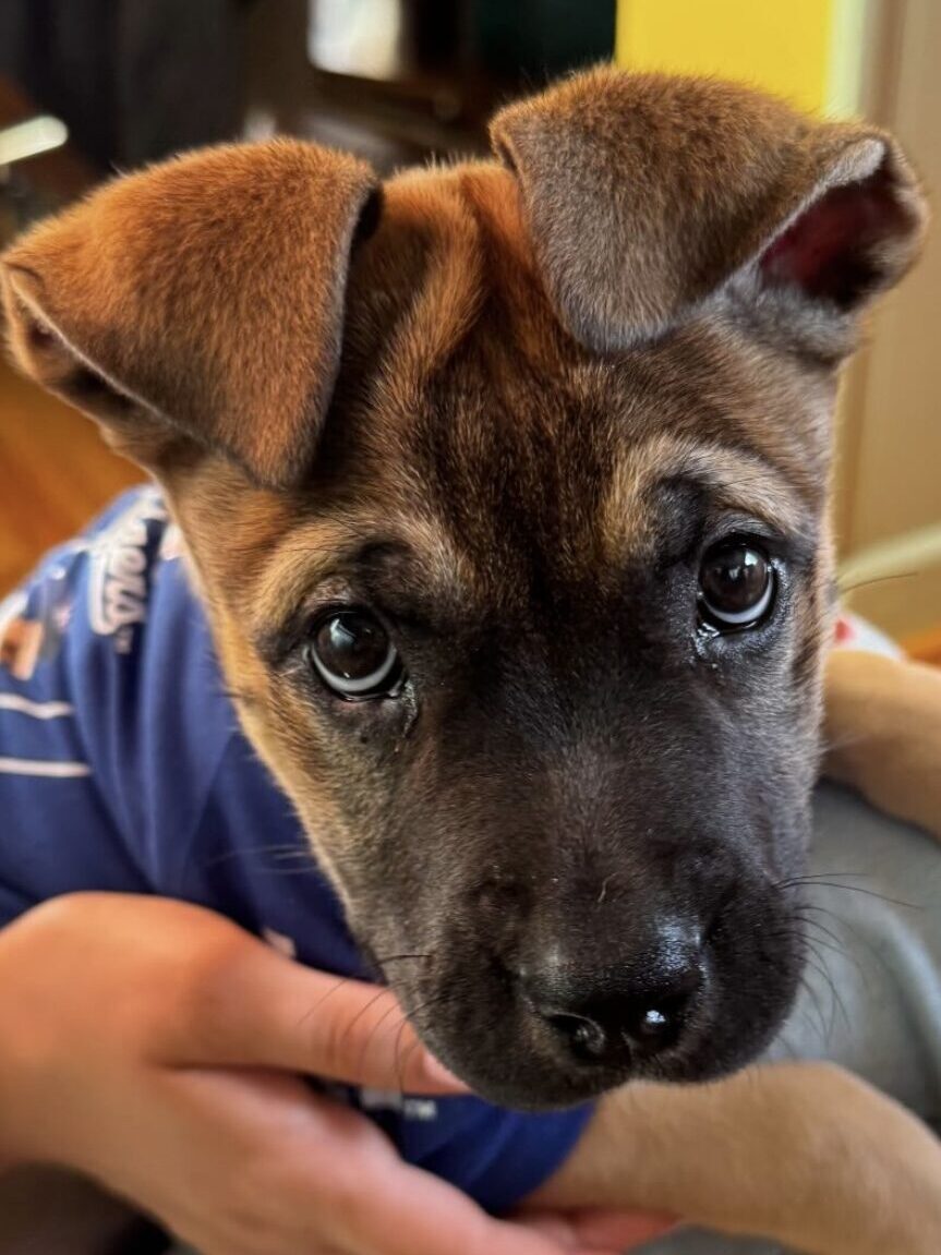I’m only 8 weeks old, so I’m still getting my vaccinations and everyone’s still figuring out my whole personality package. Translation: I’m not quite adoption-ready yet… but you can apply now! Once I’m fully vaccinated, we can meet and I can show you all my baby-dog charm in person.